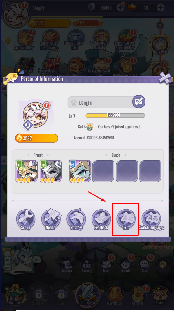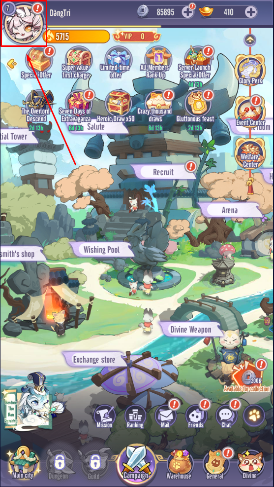 Step 1: My Lord, tap the character avatar icon at the top left corner of the screen.